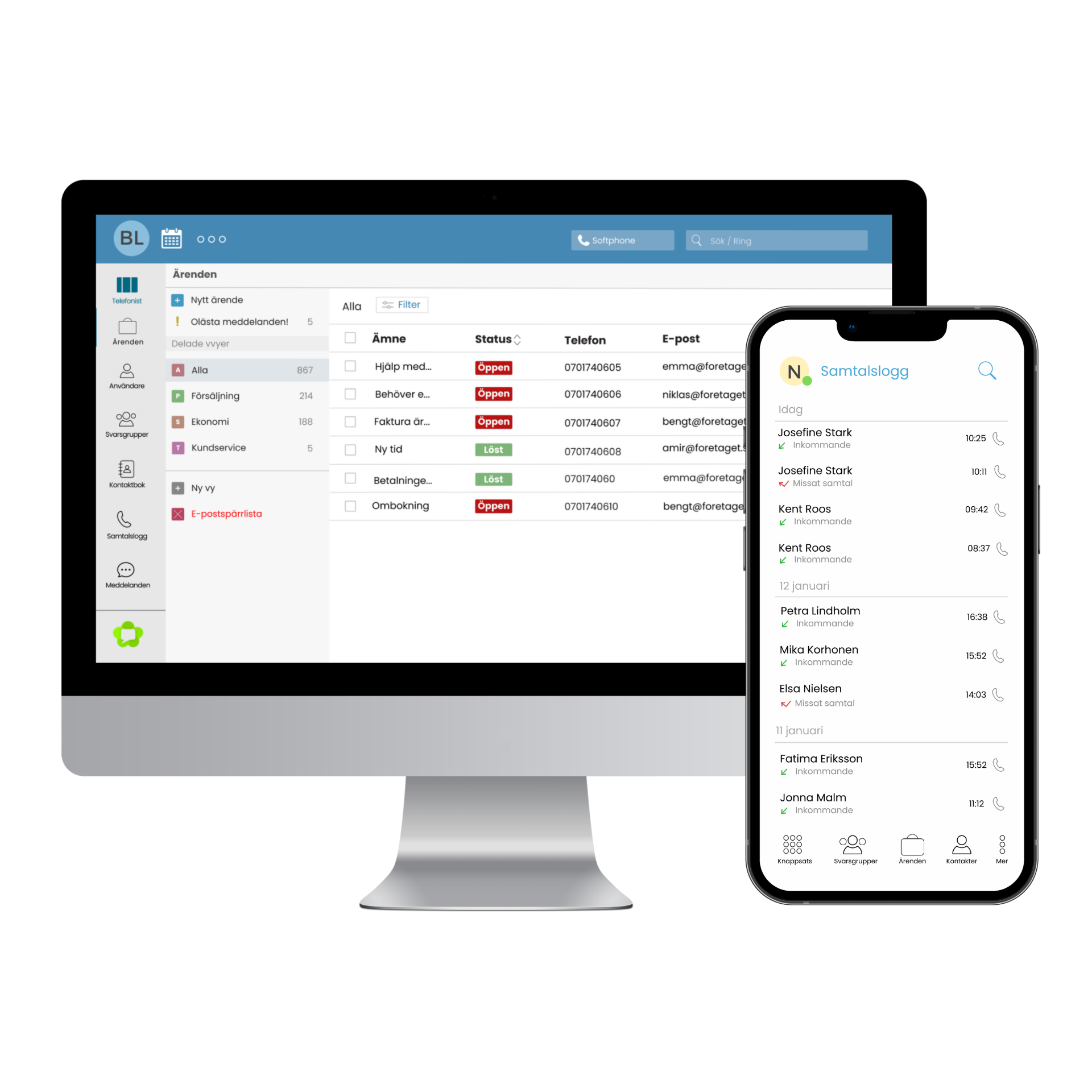 Mobilappen för iPhone/Android ger er hela växeln i fickan. Växeln är helt operatörsoberoende när det gäller mobilerna. Ni kan använda den operatör ni önskar.